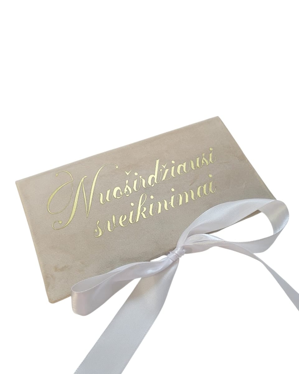 Barchatinis pinigų vokelis „Nuoširdžiausi sveikinimai”