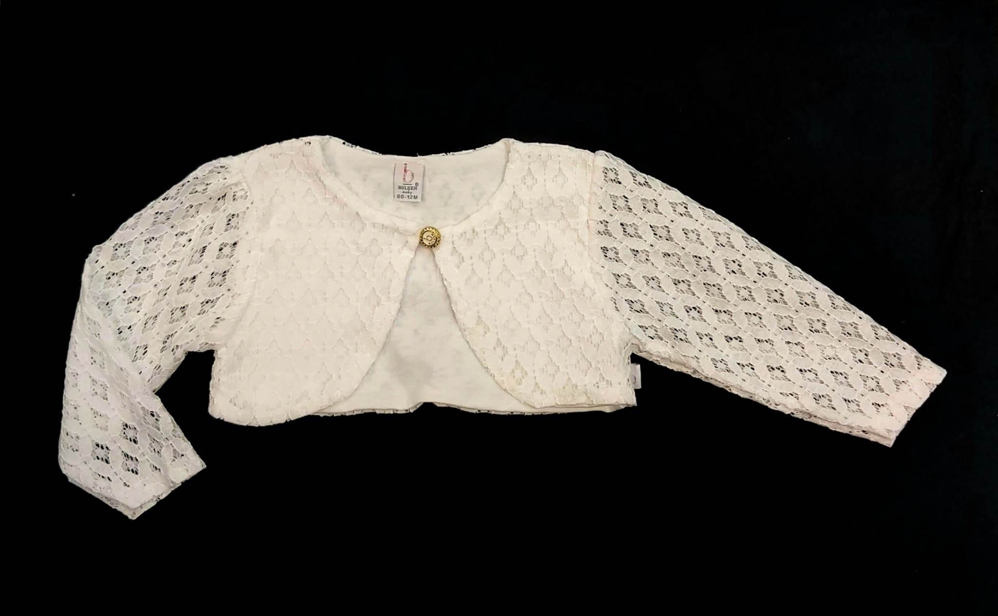 Trumpas švarkelis-bolero. Dydis 12 mėnesių:Per krūtinę 29 cm, ilgis 19 cm.