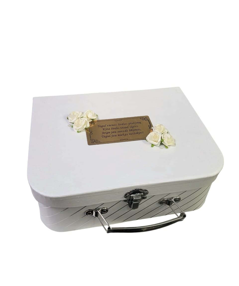 Dėžutė-lagaminėlis „Tegul vienos širdies plakimą, kita širdis visad išgirs”