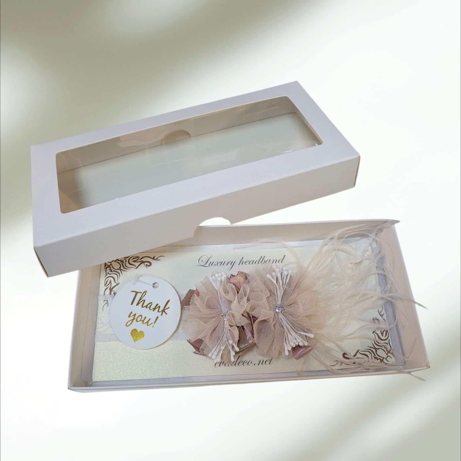 Galvajuostė „Mažos kreminės spalvos gėlės su plunksnom”