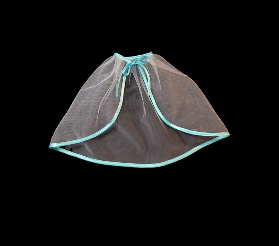 Krikšto skraistelė, kuri skirta krikšto apeigoms. Skraistės apvadas mėtinės spalvos.