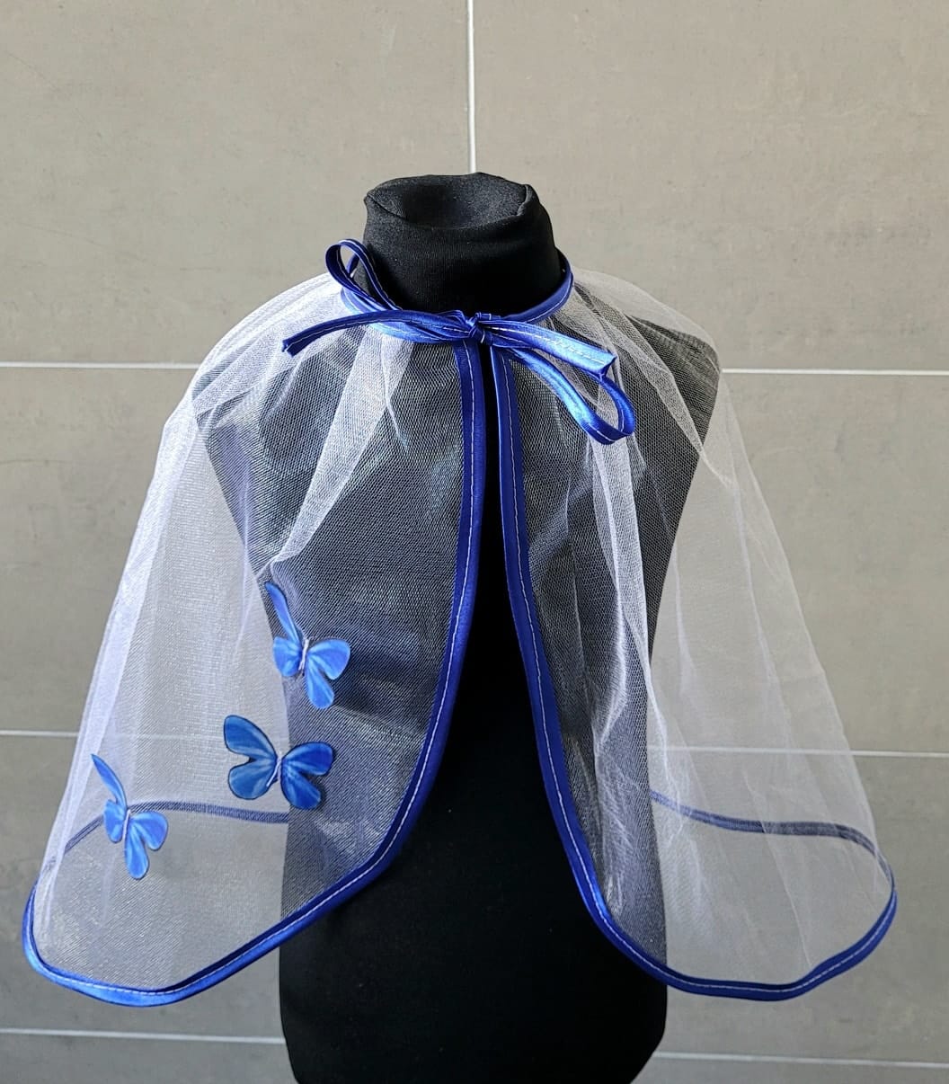 Krikšto skraistė su tamsiai mėlynu apvadu ir drugeliais