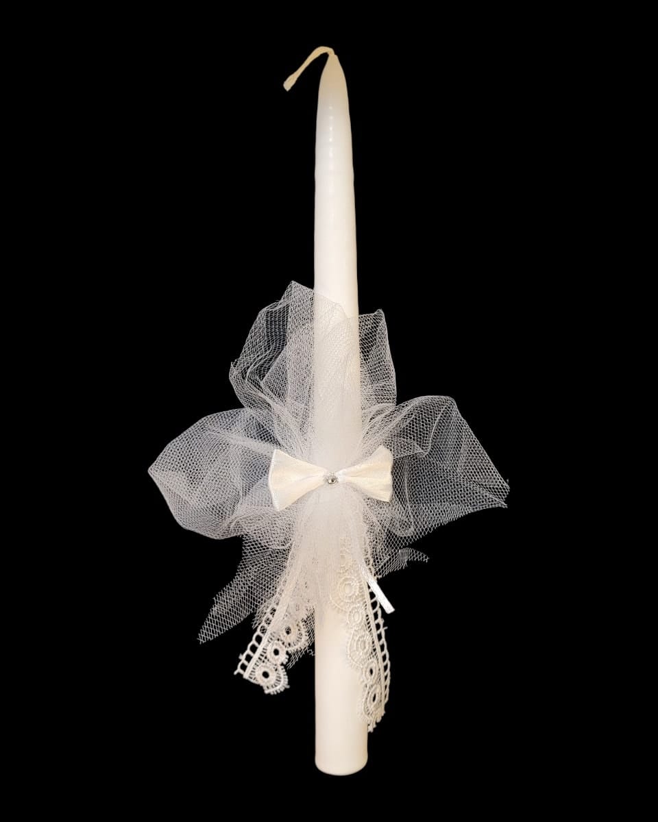 Krikštynų žvakės papuošimas. Žvakė parduodama atskirai.