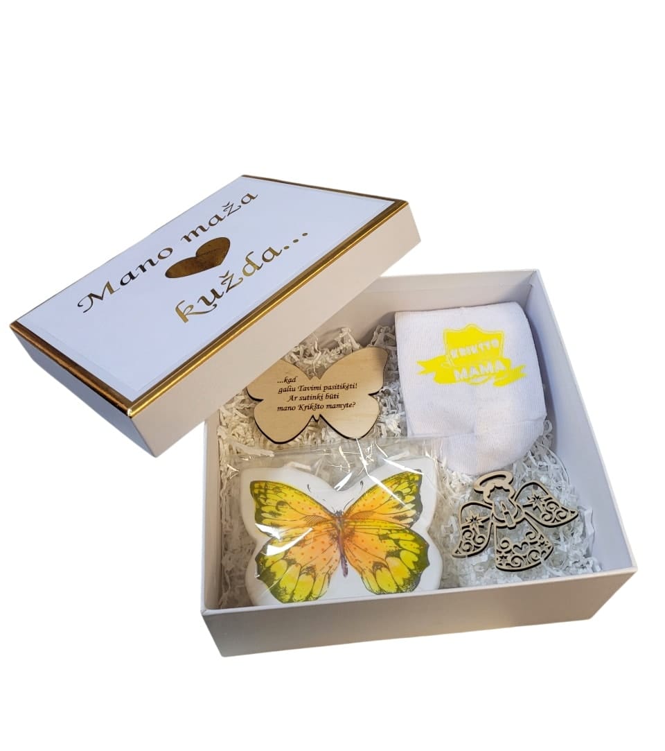 Kvietimas dėžutėje Krikšto mamai „Mano maža širdelė kužda…”