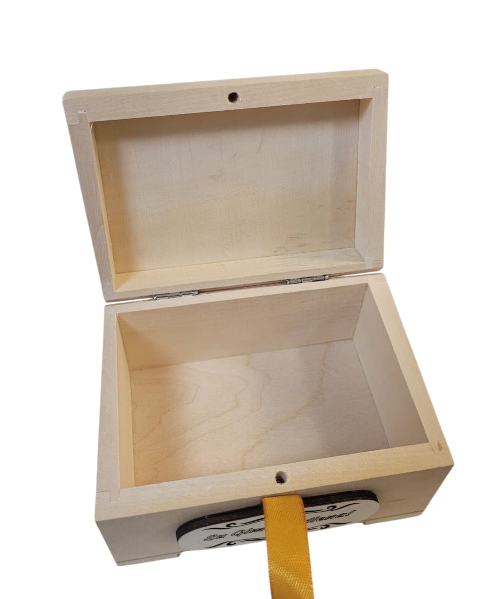 Dėžutė medinė. Dydis 12 x 9 x 7 cm. Skirta dovanoti pinigams ar smulkiai dovanėlei.