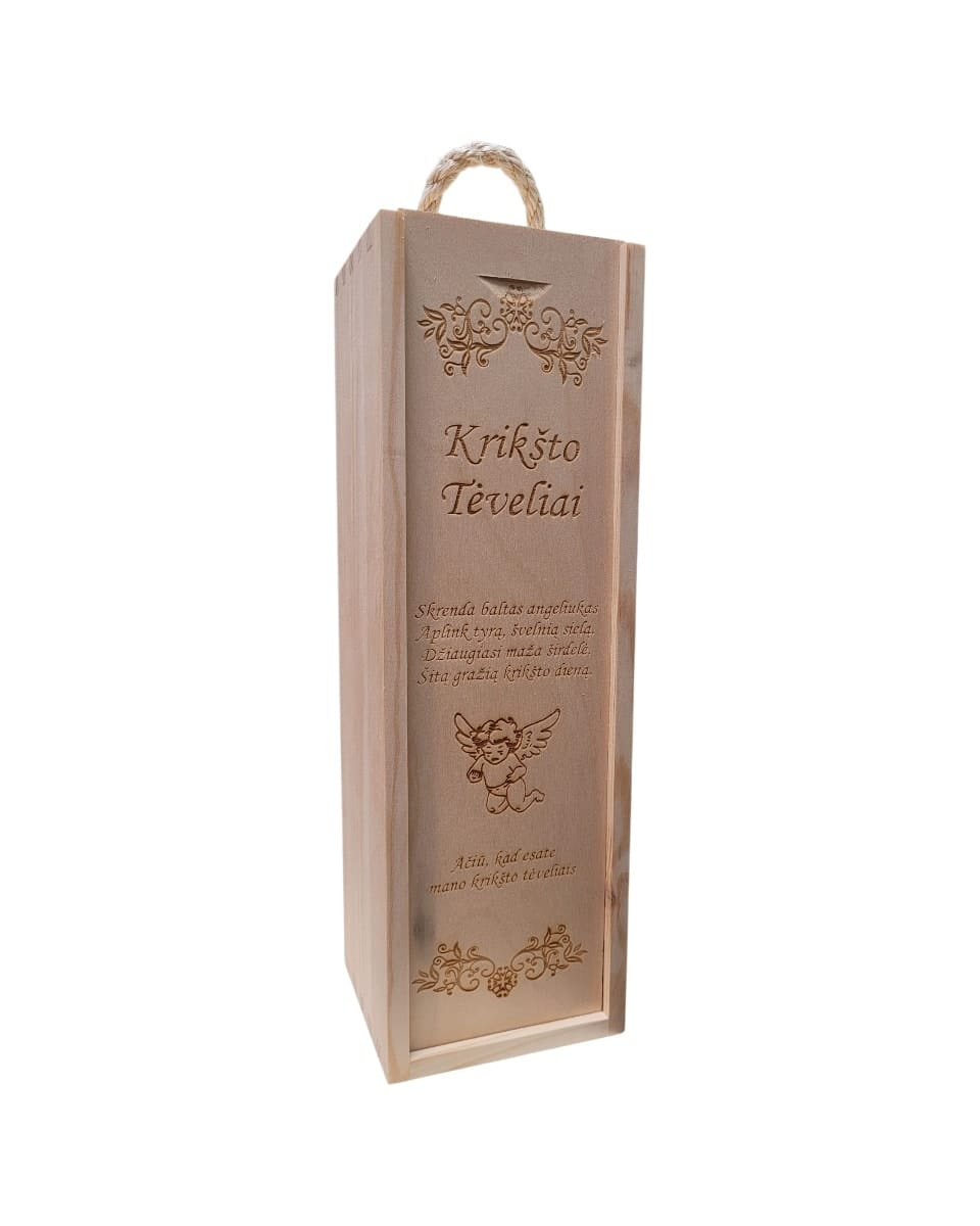 Medinė vyno dėžė „Krikšto tėveliai, skrenda baltas angeliukas aplink tyrą, švelnią sielą”