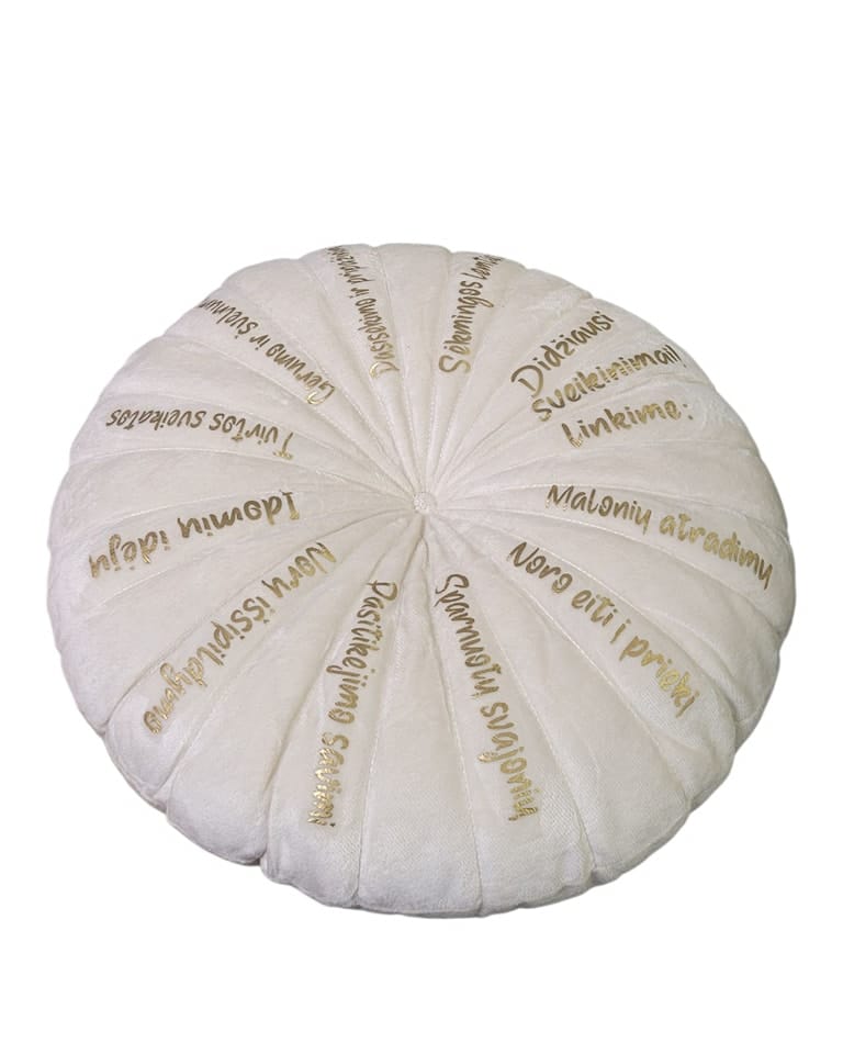 Pagalvėlė „Didžiausi sveikinimai! linkime: Malonių atradimų, noro eiti į priekį”