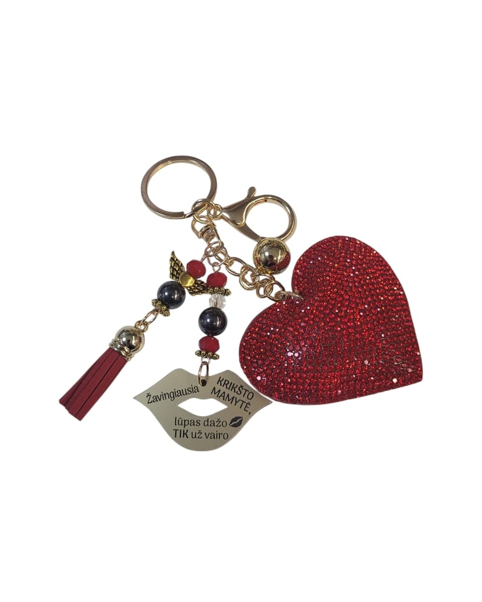 Raktų pakabukas „Žavingiausia Krikšto mamytė lūpas dažo tik už vairo”