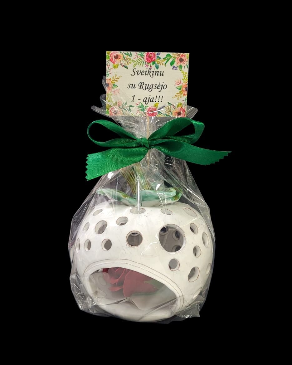 1, Keramikinis obuolys, galima panaudoti kaip žvakidę,