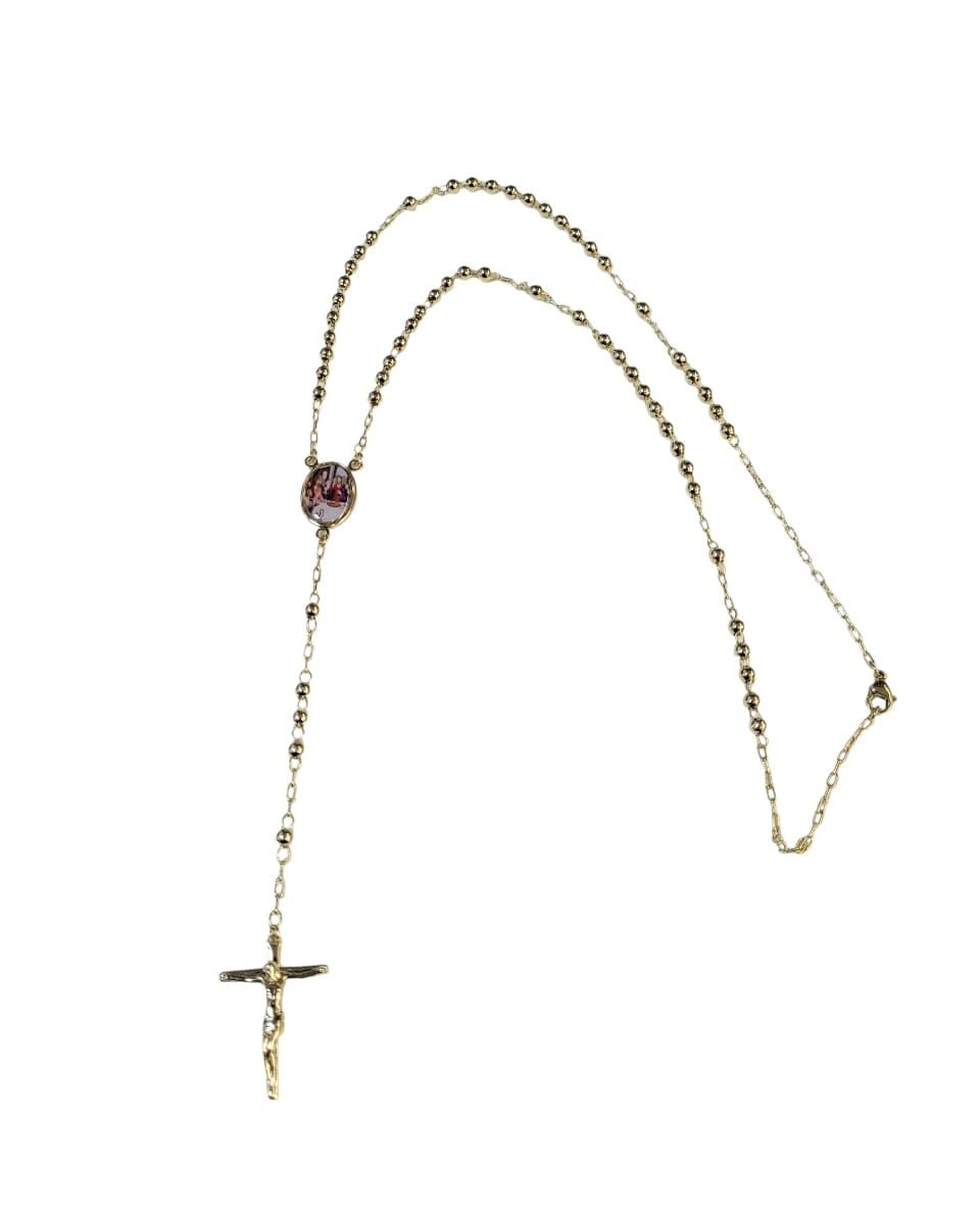 Puiki dovana Pirmosios komunijos, krikštynų ar sutvirtinimo sakramento proga . Rožančiaus ilgis sulenkto apie 43 cm. Galima kabinti ant kaklo, yra užsegimas.