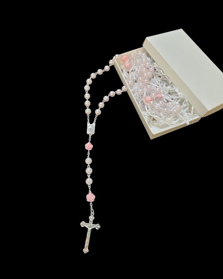 Puiki dovana Pirmosios komunijos, krikštynų ar sutvirtinimo sakramento proga . Rožančiaus ilgis sulenkto apie 38 cm.