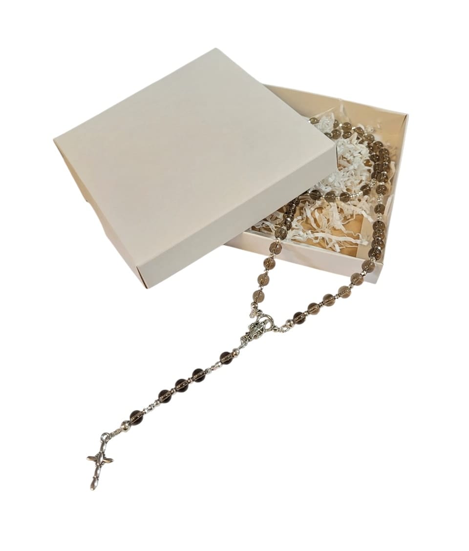 Rožančius su natūraliais akmenukais „Dūminis kvarcas”